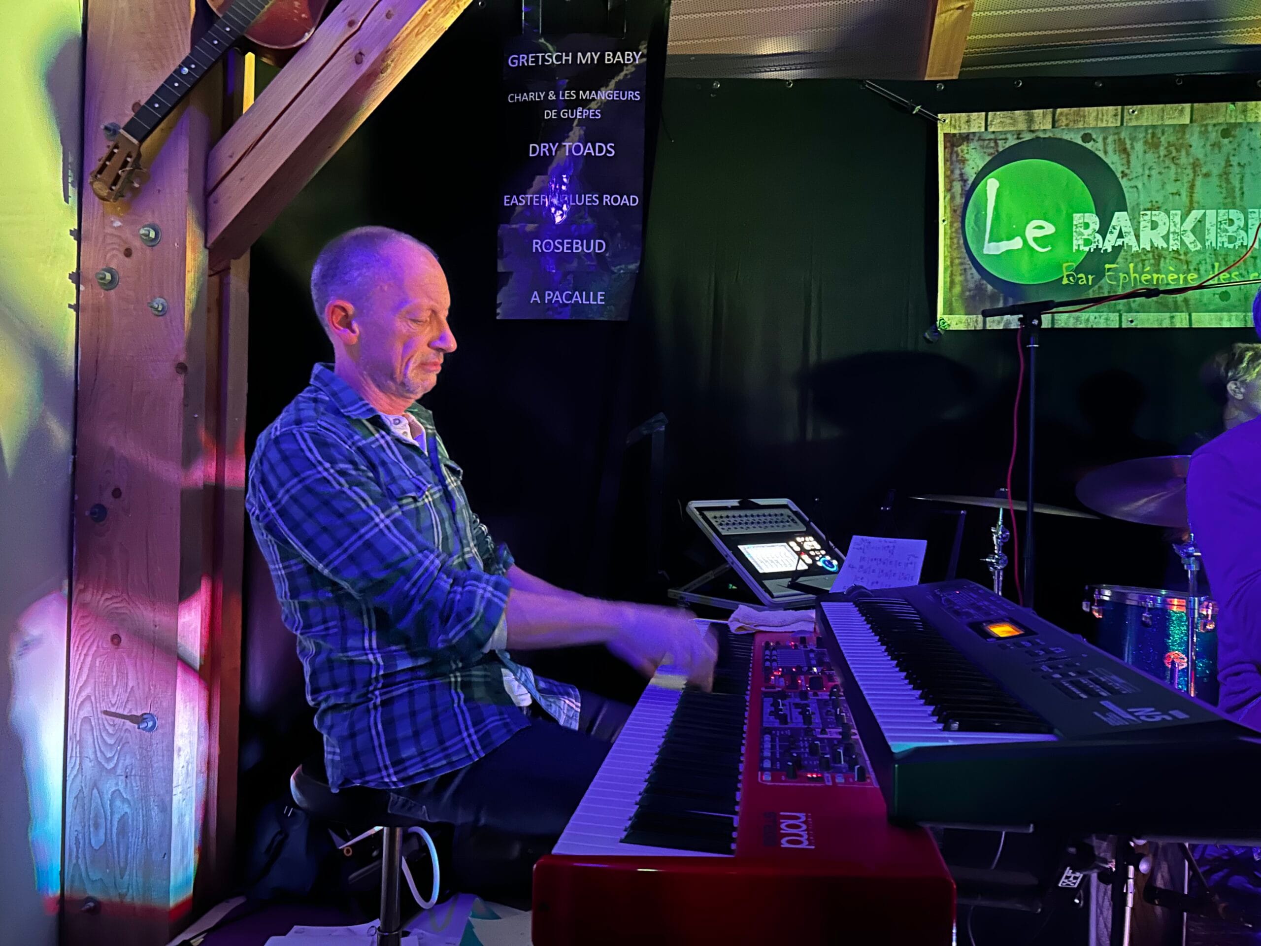 “ Pas de surprise ce soir là au Mulet Blanc. Nous connaissions les musiciens du groupe “Dry Toads”! Jean Paul Faurie à la guitare basse, le “mojo” du Mulet Blanc, musicien emblématique tant par son jeu que par sa présence. Accompagné de son fils François Faurie que nous n’avons cessé de découvrir tout au long de la soirée grâce à ses compositions…..”